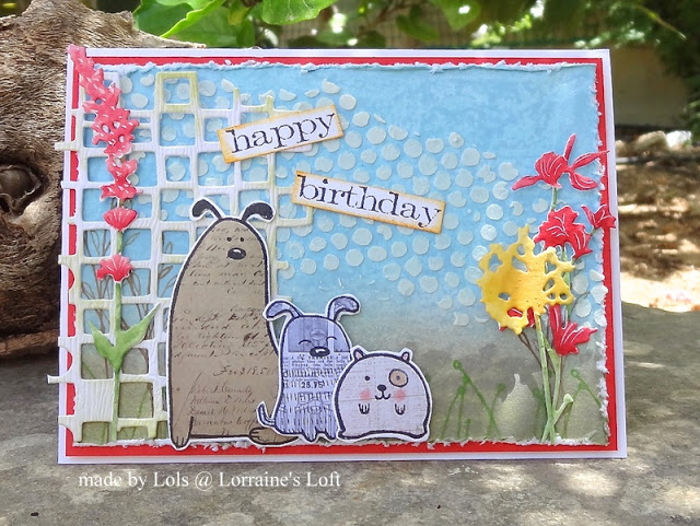 I used the Tim Holtz dies *Wildflowers*, just love the shape of all the different blossoms. For the background I used a die also designed by him, the *Mixed Media* die set.