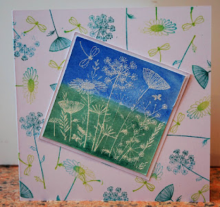 The dondelions and the dragonlfies in wihte made a gorgeous countryside scene