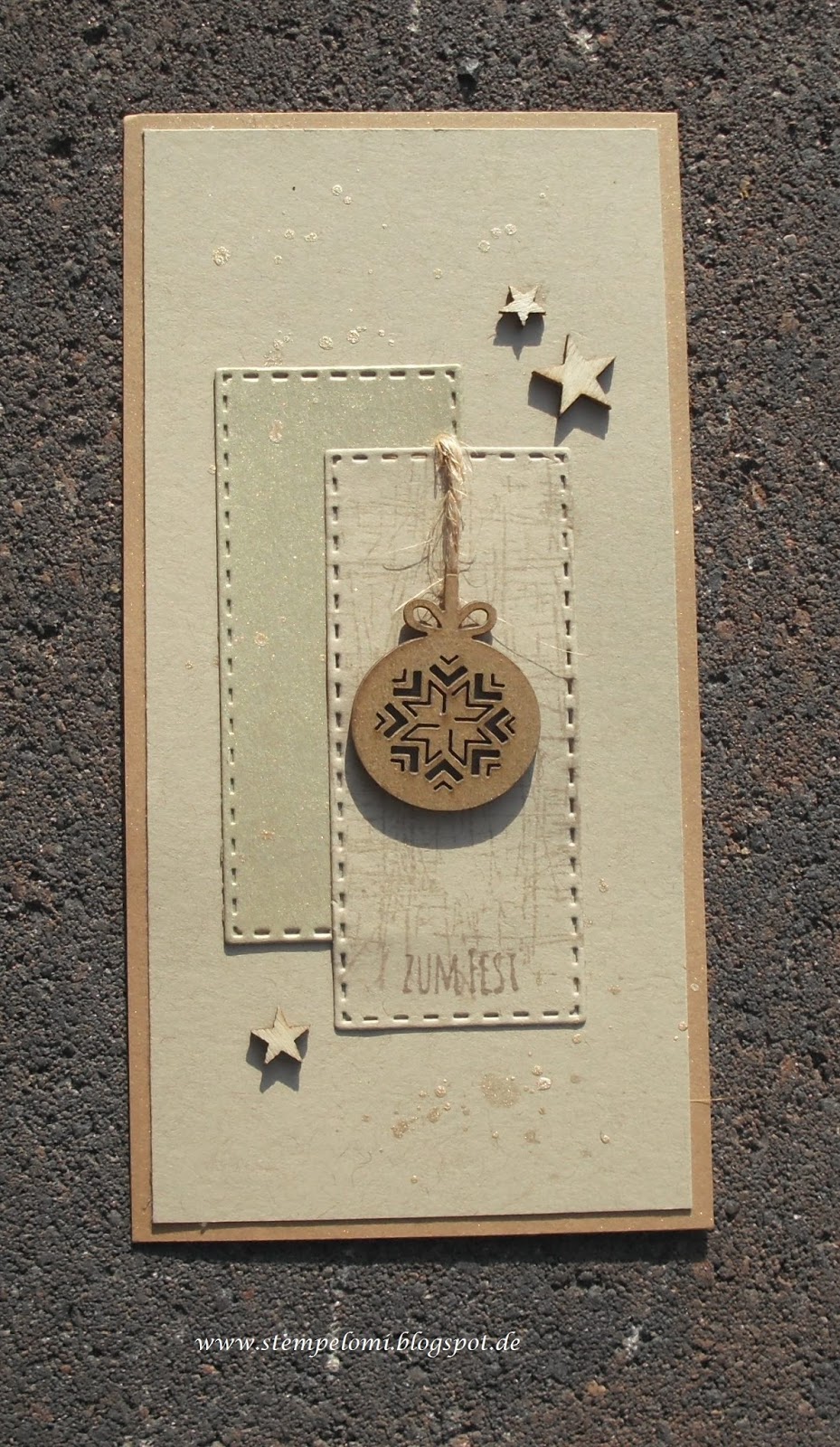 I created a Christmas Card using the Darkroom Door text stamp and the bauble from the "Brushed Christmas Vol 2" set. It's my most versatile set for Christmas Cards.